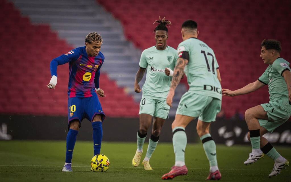 更多细节:贝伦格尔犯下的第一次犯规;第24分钟,费兰·托雷斯的进球被判无效;第33分钟,胡安·加西亚扑出乌奈·戈麦斯射门的首次扑救;以及第一张黄牌,被出示给德·加拉雷塔。上半场接近尾声时,拉米内·亚马尔用脚外侧助攻费兰完成了标志性的助攻,将比分改写为2-0。